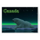 Um momento pacífico na longa noite árctica. Um Urso Polar repousa na borda de uma área aberta no gelo da matilha. As luzes do Norte brilham à distância; as estrelas brilhantes brilham sobre a cabeça. A leitura de texto "Canadá" também aparece em verde e branco brilhantes. Os ursos polares estão ameaçados. Quanto tempo mais cenas como esta poderão ocorrer? Por favor, ajude a salvar os Ursos Polares da extinção.