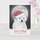 Urso polar com chapéu de Papai Noel de Natal em flocos de neve com lua de cheio sobre fundo negro do céu. A cor de fundo pode ser alterada. O texto pode ser editado.