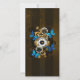 Composição do relógio de aço redondo com discagem numérica romana preta, decorado com engrenagens de ouro e latão, borboletas morfo azuis e lentes danificadas sobre fundo listrado castanho. Estilo Steampunk.
