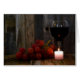 vinho tinto com uvas e velas brilhantes em madeira rústica