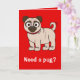 O cartão tem um cãozinho de desenho. Para itens correspondentes, digite "pinguincornerstore pug" no bar de pesquisa do Zazzle.