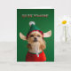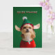 Este cartão de Natal diz tudo com a esperança de que ninguém se ofenderá. Este pequeno cão está vestindo uma roupa de elfo cheia de orelhas de elfo. É o que tem forma de cone vermelho e verde e um suéter correspondente para inicializar. Dê risada aos seus amigos nesta temporada com este cartão de férias que foi criado por Jacqueline Sleter.