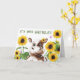 Uma aventura MOO-veloz está em curso como uma linda Vaca de Jersey Castanho congelando em um campo de Girassóis Amarelos.