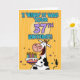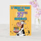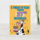 "Eu 'ouvi' que era seu 37º aniversário!" vaca divertida de aniversário segurando cartão de parabéns com bolo.