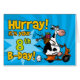 " Hurray! é seu 8o B-dia!" vaca do patinete do divertimento no cartão específico à idade do aniversário