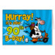 " Hurray! é seu B-dia do 90!" vaca do patinete do divertimento no cartão específico à idade do aniversário
