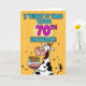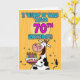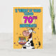 "Eu 'ouvi' que era o seu aniversário de 70 anos!" divertida vaca de aniversário segurando cartão de parabéns com bolo.