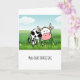 Um cartões de agradecimentos fofo e engraçado com uma vaca num pasto que diz "moochas grassias"