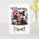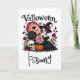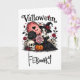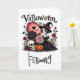 Uma pequena bruxa gótica semelhante a uma boneca em um vestido preto está sentada contra um grande fundo de coração rosado. O seu chapéu escuro de bruxa está inclinado em um ângulo garboso e fixado com um conjunto de rosas vermelhas; cachos pretos soltos enquadram um rosto pálido com olhos grandes e expressivos e um leve sorriso conhecedor. Um lembrete silencioso da mortalidade que parece mais ornamental do que ameaçador. Uma mistura de afeto e estranheza: amor e susto misturados em um tema. A palavra “Valloween” arqueia acima para que o texto se torne parte da história decorativa da imagem.