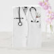 Cartão de agradecimento ao médico com o jaleco do médico com uma canivete suíça no bolso. Edite o texto para adicionar o nome do médico.