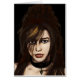 Uma pintura digital de uma vampira com cabelo castanho colorido e um chocante de flecha pendente.