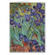 Vincent Van Gogh Irises no Santo Remy - Irrises de Vincent Van Gogh é uma pintura impressionista maravilhosa de um dos artistas do impressionismo mestre de todos os tempos. O jardim da íris está girando com cor e emoção, à medida que os iriscos roxos fluem de seus caules e folhas verdes azuis. Há algumas flores cor de laranja no fundo, atrás das raias roxas. Verdes, azuis, púrpuras e laranjas estão vibrantes na obra-prima de Van Gogh. Vincent van Gogh pintou irrises em 1889. Ele pintou as flores no sul da França, durante seu primeiro mês em Santo-Rémy. Ele foi encorajado a pintar durante sua estadia, e Van Gogh pintou os jardins da íris que estavam no local do hospital. Ele escreveu ao seu irmão Theo, "Quando você receber as canvas que fiz no jardim, verá que não estou muito melancólica aqui.