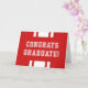 Cartão de graduação estilo varsity com as palavras "Parabéns Graduado!" e listras brancas em um fundo colorido editável (clique em personalizar para alterar).