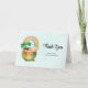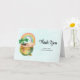 Cartão de agradecimento com uma ilustração adorável com um vaso verde e dourado sorridente com um arco-íris fofo,