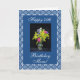 Cartão de saudação para o aniversário de 75 anos da mãe com quadro de rendas e foto de um vaso do amarelo com fundo azul. Personalize sua mensagem! Tarjeta postal en ingles con una foto de un ramos da flor para el 75 cumples de uma mama! Personalize nosso mensaje! (puede replazar el texto). Fotografia de Maria Santos (Lusinhas do Sul)