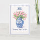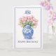 Celebre-a com o charme atemporal do estilo Grandmillennial. Este cartão de aniversário elegante apresenta um clássico jarro de gengibre Chinoiserie azul e branco repleto de tulipas rosa suaves. Com sua borda rendilhada tradicional e tipografia serifada sofisticada, é a escolha perfeita para uma mãe, irmã ou amiga que ama o estilo clássico e sofisticado. Totalmente personalizável - adicione um monograma ou nome na frente e uma mensagem pessoal dentro através da ferramenta de design da Zazzle.