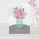Deseje bênçãos à sua sobrinha no aniversário dela. Este belo vaso de jarra de pedreiro contém um buquê misto de flores com visual de aquarela em uma mesa listrada. Belo cartão religioso para dizer feliz aniversário.