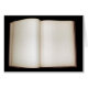 Abrir livro com cartão com fotos de páginas de vazio. Livro muito antigo com amarelinho de páginas