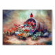 De uma pintura a óleo original por Brenda Thour de um cardeal masculino empoleirou-se em um tambor das flores derrubadas em seu lado. Copyright por Brenda Thour 2005.