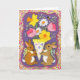 Dois coelhos apresentam um buquê de flores do primavera. A arte original era applique e bordado. O cartão é interior vazio para sua mensagem.