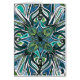 Uma mão abstrata da mandala tirada com caneta e tinta em um teste padrão impressionante do starburst e de flor. Colorido com o lápis nas matiz do azul e do verde.