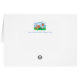 Um cartão de nota de vazio com o Farol Nauset em Cape Cod, Massachusetts, com telhado vermelho brilhante e flores silvestres roxas embrulhadas ilustradas com tinta e aquarela.
