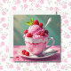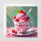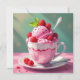 Um advogado vazio para escrever uma nota para você ou para um amigo. O cobrir tem uma xícara de sorvete de framboesa.