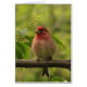 Este notecard caracteriza um passarinho roxo bonito que senta-se altamente acima em um ramo, cercado pelas folhas verdes. Tem uma cabeça vermelha brilhante e um peito rosa pálido. Seu bico resistente é perfeito para sementes de rachamento. É o pássaro que o ornithologist famoso, Tório Peterson de Roger, descrito como um "pardal mergulhou no suco da framboesa."
