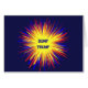Está aqui um cartão de nota vazio que caracteriza um teste padrão político do abstrato do starburst no vermelho, no amarelo e no azul com o trunfo da descarga das palavras no centro. O texto pode ser personalizado.