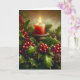 A luz quente de uma vela contra o santo de Natal.