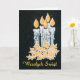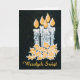 Um cartão chic de Natal com a saudação em polonês e cinco velas com cola, pintada à mão em ouro e prata num fundo preto estrelado.