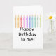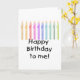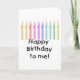 Uma linha de várias cores, velas de aniversário e texto que diz "Feliz Aniversário para mim!" em cartões de aniversário, T-shirts, canecas e muito mais.