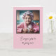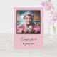 Uma idosa com curlers cor-de-rosa no cabelo e um roupão cor-de-rosa segurando uma xícara de vapor por fazer anos velhos. O quadro é pontos de pinos brancos sobre fundo rosa pincelado. Todo texto é editável.