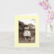 Esta fotografia retrosépia de duas gêmeas pequenas de 1959 destaca-se realmente neste cartão. Os gêmeos idênticos de cinco anos bonitos estão vestindo seus vestidos de impressão favoritos que a mãe deles fez para eles. Eles estão no jardim dos fundos da casa do conselho com sua irmã mais velha, ela tem seus braços carinhosamente ao redor de seus ombros e ela está vestindo um vestido que mostra a moda para vestidos completamente deslumbrados vestidos com rede em camadas de cheio sob o casaco para dar mais plenitude. O gato da família acabou de se perguntar, o gengibre tom foi chamado Rusty. Esta velha foto em preto e branco mostra uma feliz cena familiar da década de 1950 e faz uma única placa retrô. Este é um cartão de nota de vazio para você adicionar sua própria mensagem escrita à mão.