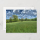 Uma paisagem verde rica, com um campo da grama alta afiado com árvores sob um cheio profundo do céu azul das nuvens. Uma árvore inoperante gnarled está por se no meio do campo.