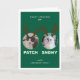 Mande alegria de férias para a família e amigos com este cartão com fotos verde, divertido, com os rostos bonitos de seus dois bebês peludos. Uma mensagem de "Natal meowy" sinaliza que seus amigos do gato felpudo também enviam cumprimentos festivos. Personalize todas as áreas de texto para atender às suas necessidades, incluindo um espaço de mensagem mais longo no dentro com espaço para uma atualização curta. Posicione os humanos da família com a foto do dentro e partilhe seus nomes também.