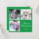 Adicione três (3) imagens da sua família para criar um cartão verde verde e verde de fundo verde de cor sólida quadrado, minimalista de Feliz Natal. Você pode personalizar o plano de fundo, o texto e o gráfico de texto Feliz Natal com as cores escolhidas. As amostras de fotos são gatinhos bonitos. Adicione suas próprias fotos. Nesta versão do cartão, o verso é vazio, mas você pode adicionar uma mensagem de texto personalizada para familiares e amigos.