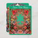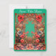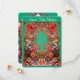 Cartão de Casamento Verde para Salvar a Data com Desenho Floral. Frente retrata um desenho floral no estilo Mucha. Verso contém um desenho floral no estilo Mucha com os detalhes personalizados do casamento planejado.
