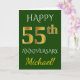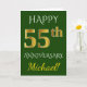 Este simples design de cartão de aniversário de casamento personalizado apresenta a mensagem "FELIZ ANIVERSÁRIO DE 55 ANOS", com o "55" tendo uma aparência semelhante a dourado falso. A frente também apresenta um nome personalizado e um fundo verde. O interior apresenta uma mensagem de aniversário de casamento personalizável. Pode ser dado a um marido ou esposa em celebração do aniversário de casamento de cinquenta e cinco anos do casal. [~Z0000086]