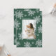 Este elegante cartão de Natal apresenta lindos flocos de neve com aquarela pintada à mão sobre um fundo verde. O verso do convite inclui o mesmo padrão de flocos de neve. Personalize a frente do convite com uma mensagem e um nome de família/ano.