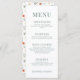Sofisticados e caprichosamente botânicos, estes cartões de cardápio rústicos apresentam folhas verdes com terracota e flores cor de laranja quentes.