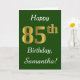 Cartão Verde, Faux Dourado 85º aniversário + Nome Persona
