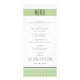 O cartão de cardápio do ORÇAMENTO apresenta um sofisticado padrão geométrico verde e branco, complementado por tipografia desenhada à mão. O termo "MENU" aparece elegantemente numa faixa verde de sábios, enquanto os nomes do casal são gravados criativamente numa fonte encantadora desenhada à mão. O verso da carta revela um design geométrico espantoso em verde e branco de sábio, acrescentando um toque de elegância ao olhar geral.