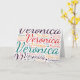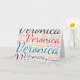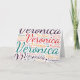 Veronica. Mostre e use este popular e belo nome feminino projetado como uma nuvem de palavras colorida feita de tipografia de letras cursivas horizontais e verticais em diferentes tamanhos e cores frescas e adoráveis. Use seu nome americano positivo ou mostre ao mundo quem você ama ou admira. Produtos com esta arte de texto suave são um ótimo presente, não apenas no mês da história das mulheres, ou presente de aniversário.