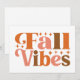 Este design elegante e vibrante de outono apresenta a frase "Fall Vibes" em uma fonte ousada e inspirada no retro que exala uma energia quente e convidativa. O texto é apresentado em uma mistura lúdica de cores outonais, incluindo laranjas ricos, rosas suaves e marrons quentes, capturando perfeitamente a essência da estação. Ao redor do texto estão pequenas faíscas semelhantes a estrelas que adicionam um toque de capricho e magia, realçando o sentimento festivo geral do design. As letras grandes e grossas com suas curvas suaves dão ao design um apelo vintage, mas contemporâneo.