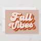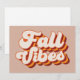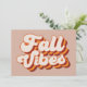 Este design inspirado no outono apresenta de forma proeminente a frase "Fall Vibes" em uma fonte negrita em estilo 3D que chama imediatamente a atenção. O texto é sobreposto com cores quentes de outono, incluindo laranjas ricos, vermelhos profundos e cremes suaves, criando uma sensação de profundidade e dimensão que faz as palavras se destacarem do fundo. A tipografia em estilo vintage com suas bordas suaves e arredondadas dá ao design um sentimento nostálgico, reminiscente da estética clássica dos anos 1970. As sombras lúdicas e os contrastes de cor adicionam ao apelo dinâmico e atraente do design.
