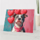 Brilhar o dia de alguém com este design ousado de pop-arte, com um Staffordshire Terrier americano num bandana com padrão de coração, rodeado por balões em forma de coração. Com vermelhos vibrantes, pinks e néon salpicos, esta carta traz uma vibração divertida e enérgica — perfeita para qualquer um que ama arte única e divertida e celebra o Dia do Namorados com estilo.
