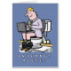 O homem é tão viciado na internet que está no banheiro e usando seu laptop enquanto está sentado no banheiro. Cartoon de um homem sentado no banheiro com seu laptop. Cartão de vazio engraçado