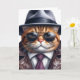 Arte de aquarela com uma adorável tábua laranja-gangster vestindo uma roupa de cinza, colete, gravata de molho, camisa branca, jaqueta castanha e um chapéu.