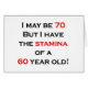 Eu posso ser 70 mas eu tenho o vigor de umas pessoas de 60 anos! O design cómico para as pessoas de 70 anos que a conhecem o ou pode competir com o alguém 10 anos mais novo. Faz um grande presente de aniversário do 70.